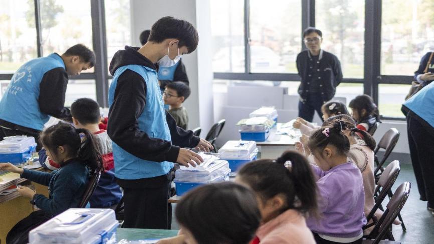 航模志愿者活動中引導小朋友制作航模