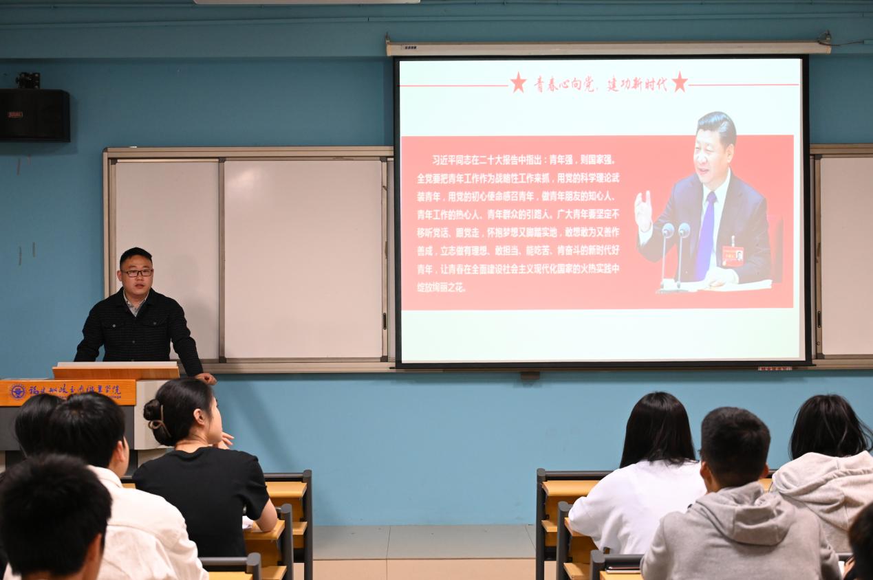 分黨校的第四講,由學生黨員張童為入黨積極分子們授課。他講到踔厲奮發(fā)的邁向新征程,就必須高舉偉大旗幟。黨的二十大報告高屋建瓴、宏大精深,科學回答了堅持和發(fā)展中國特色社會主義的歷史之問、時代之問和人民之問,開辟了馬克思主義中國化時代化新境界,是一篇閃耀著馬克思主義真理光輝的綱領(lǐng)性文獻,是新時代新征程黨和國家事業(yè)發(fā)展、實現(xiàn)第二個百年奮斗目標的政治宣言和行動綱領(lǐng)。