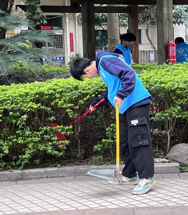 活動中,志愿者們身穿藍(lán)馬甲,手拿勞動工具,對小區(qū)綠化帶內(nèi)的紙屑和煙蒂、主干道的落葉及衛(wèi)生死角進(jìn)行集中清理,確保環(huán)境整潔。經(jīng)過志愿者們齊心協(xié)力的努力,小區(qū)面貌煥然一新。