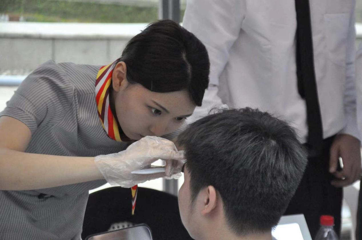 空中乘務(wù)專業(yè)的職場形象塑造技巧展示,通過化妝技巧、絲巾搭配等形象塑造,展示在職場中如何梳理正確的職場形象及職場溝通技巧。絡(luò)繹不絕的來賓到這里學(xué)習在職場、在生活中如何得體的化妝,展示更好的自己。
