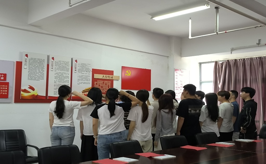 會議開始前,在支部書記白鋒橋的領誓下,全體畢業(yè)生黨員起立,面向鮮紅的黨旗莊嚴舉起右手,共同重溫入黨誓詞。