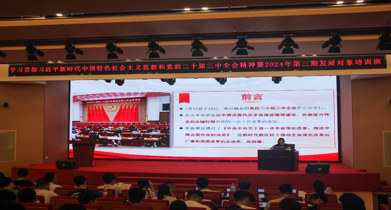 為深入學(xué)習(xí)貫徹黨的二十屆三中全會(huì)精神,進(jìn)一步加強(qiáng)青年思想政治引領(lǐng),引導(dǎo)廣大青年在學(xué)思踐悟中凝聚奮進(jìn)力量,通用航空產(chǎn)業(yè)學(xué)院黨總支于2024年9月4日下午在藝新樓331學(xué)術(shù)廳開展學(xué)習(xí)貫徹黨的二十屆三中全會(huì)精神宣講會(huì),會(huì)議由通用航空產(chǎn)業(yè)學(xué)院黨總支副書記蘇漢美主講,學(xué)院第三期130余名黨員發(fā)展對(duì)象參會(huì)。