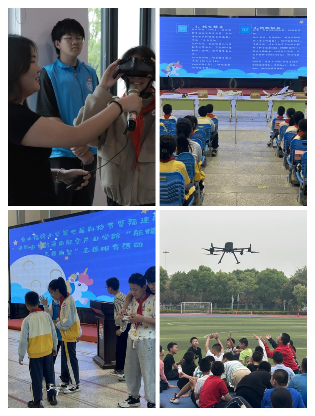 活動(dòng)伊始,志愿者們迅速行動(dòng)起來(lái),以飽滿的熱情投入到各個(gè)環(huán)節(jié)。知識(shí)科普區(qū),志愿者們化身為“航空老師”,借助精心準(zhǔn)備的PPT和趣味十足的動(dòng)畫視頻,深入淺出地向小學(xué)生們講解無(wú)人機(jī)與飛機(jī)的構(gòu)造、飛行原理等知識(shí),孩子們聚精會(huì)神,眼中閃爍著好奇與渴望。體驗(yàn)區(qū)更是熱鬧非凡,志愿者們帶來(lái)的虛擬現(xiàn)實(shí)VR設(shè)備和夾子機(jī),讓孩子們親生體驗(yàn)科技的魅力。最震撼的當(dāng)屬無(wú)人機(jī)飛行展示環(huán)節(jié),起飛指令下達(dá),無(wú)人機(jī)如離弦之箭般緩緩升空,在空中靈活盤旋,做出各種高難度動(dòng)作。孩子們仰著頭,滿是好奇與興奮,歡呼聲、驚嘆聲此起彼伏,現(xiàn)場(chǎng)氣氛瞬間被推向頂點(diǎn),這場(chǎng)精彩絕倫的無(wú)人機(jī)表演,在孩子們心中種下了科學(xué)的種子,激發(fā)了他們對(duì)未知的探索欲,點(diǎn)燃了他們的科學(xué)探索精神,為他們打開(kāi)了一扇通往科技世界的大門。