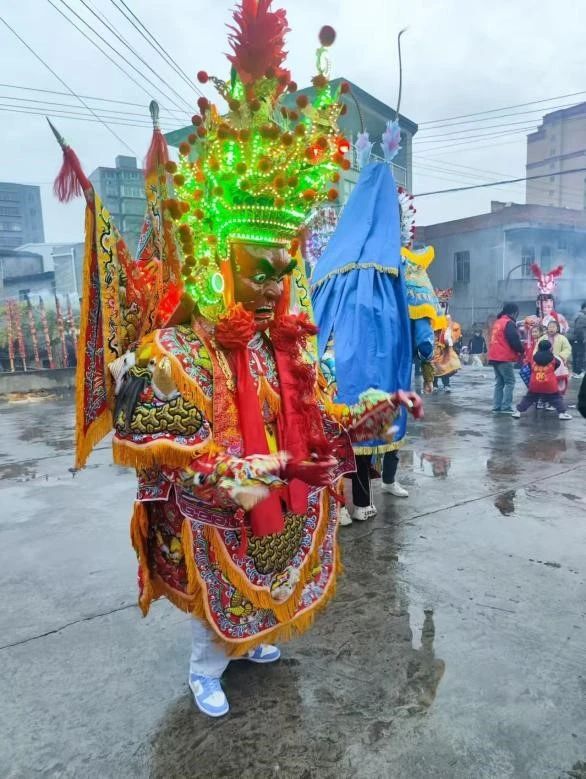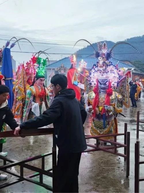 長樂厚福的游神活動(dòng)現(xiàn)場,人聲鼎沸、熱鬧非凡,瞬間將同學(xué)們卷入民俗文化的歡樂漩渦。色彩斑斕、造型各異的神像被簇?fù)碓谘灿侮?duì)伍中央,或莊重、或慈祥、或威猛,每一尊皆為民眾精神寄托的具象。伴隨喧天鑼鼓、悠揚(yáng)嗩吶,巡游隊(duì)伍走街串巷,所到之處,鞭炮齊鳴,居民虔誠敬拜,這是民間信仰與鄉(xiāng)土情懷緊密交織的畫面。