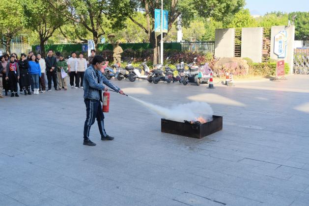 疏散演練結(jié)束后,進入消防器材實操教學(xué)環(huán)節(jié)。通用航空產(chǎn)業(yè)學(xué)院邀請安全保衛(wèi)處專業(yè)人員現(xiàn)場指導(dǎo),詳細講解滅火器“提、拔、握、壓”四步操作要領(lǐng),演示了如何判斷火源、選擇站位(上風(fēng)向)、對準(zhǔn)火源根部滅火等規(guī)范動作,并強調(diào)了實操過程中的安全注意事項。參訓(xùn)教職工分組輪流上手實操,在專業(yè)人員的指導(dǎo)下逐一完成滅火器滅火操作,切實將理論知識轉(zhuǎn)化為實戰(zhàn)技能。其他參與單位教職工現(xiàn)場觀摩學(xué)習(xí),同步提升消防實操能力。