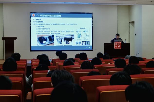 講座伊始,丁偉濱首先從燃燒的基本原理、火災(zāi)發(fā)生的常見原因等基礎(chǔ)知識入手,結(jié)合高校人員密集、實(shí)驗(yàn)室及宿舍隱患多的特點(diǎn),說明了日常預(yù)防、隱患識別與初期應(yīng)對的關(guān)鍵性。
