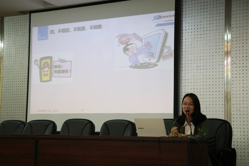 我中心與省內(nèi)著名安全企業(yè)——福建省海峽信息技術(shù)有限公司合作,于2016年10月19日在學院一號樓學術(shù)報告廳開展專場信息安全意識培訓。針對目前網(wǎng)絡上普遍存在的各種問題和現(xiàn)象,加強學生網(wǎng)絡安全意識,引導學生正確辨識各種網(wǎng)絡言論,培育文明理性網(wǎng)絡行為,取得了良好的效果。
