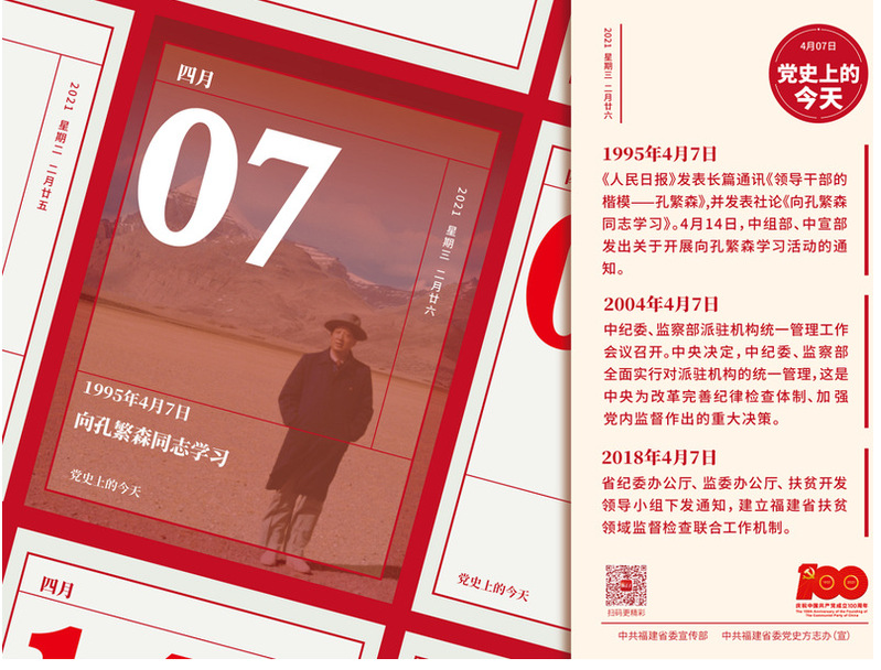 1995年4月7日,《人民日報》發(fā)表長篇通訊《領導干部的楷?!追鄙?,并發(fā)表題為《向孔繁森同志學習》的社論。4月14日,中共中央組織部、中共中央宣傳部發(fā)出關于開展向孔繁森學習活動的通知。