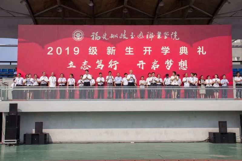 9月10日上午,學院舉行2019級新生開學典禮。學院黨委書記張海明,院黨委副書記、院長陳錦輝,院黨委副書記陳宜大,院黨委委員、紀委書記張輝,院黨委委員、副院長高汝武,院黨委委員、副院長張祖柱,院黨委委員、副院長陳艷紅出席典禮。
