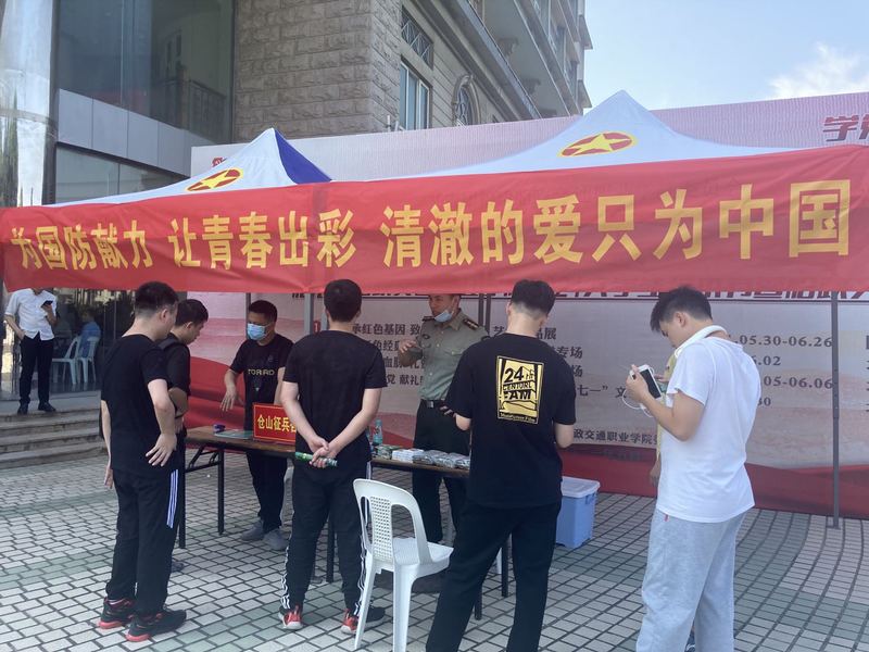 活動當(dāng)天,通過擺放宣傳展板、懸掛醒目橫幅和發(fā)放征兵手冊等方法,全方位、多角度向同學(xué)們介紹應(yīng)征條件、入伍優(yōu)待、選用培養(yǎng)等相關(guān)政策,并對普遍關(guān)心的學(xué)費(fèi)補(bǔ)償代償、復(fù)學(xué)轉(zhuǎn)專業(yè)、軍旅生活體驗(yàn)等熱點(diǎn)問題做了詳細(xì)解答,為他們參軍入伍出謀劃策,進(jìn)一步加深了同學(xué)們對參軍認(rèn)知,有力激發(fā)了他們報(bào)名參軍的熱情。