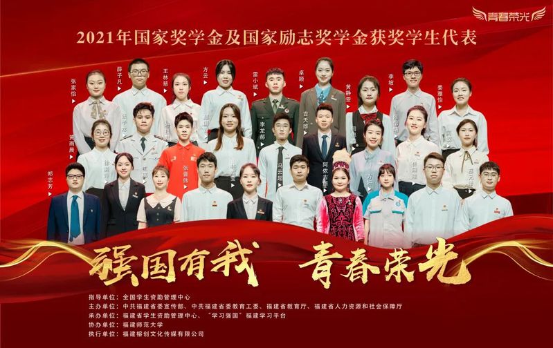 5月31日20:00,“強(qiáng)國有我,青春榮光”第三屆國家獎學(xué)金福建省頒獎大會在線上播出。