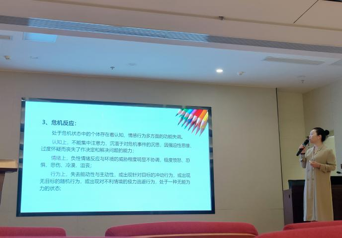 高華教授通過深入淺出的講解和豐富的案例分析,為輔導(dǎo)員們提供了寶貴的知識(shí)和經(jīng)驗(yàn)分享。講座內(nèi)容涵蓋了心理危機(jī)的識(shí)別、預(yù)防策略、干預(yù)方法以及如何構(gòu)建有效的支持系統(tǒng)等多個(gè)方面。高華教授特別強(qiáng)調(diào)了早期識(shí)別和及時(shí)干預(yù)的重要性,并提供了實(shí)用的溝通技巧和心理支持策略。