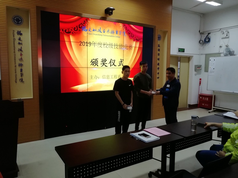 本次比賽共進行云計算&&信息安全—LINUX系統(tǒng)管理技術(shù)、VR虛擬現(xiàn)實建模技術(shù)、平面設(shè)計技術(shù)、Python程序設(shè)計與應用、移動互聯(lián)應用開發(fā)、軟件測試等6個賽項的角逐,參與學生達到130人,最終有10位同學獲得了一等獎。10月31日下午,信息工程系孫基書記,黃金鳳主任,以及本次比賽獎品贊助商優(yōu)創(chuàng)課堂的張欽華總經(jīng)理,系部各賽項的指導老師和同學參加了頒獎儀式。