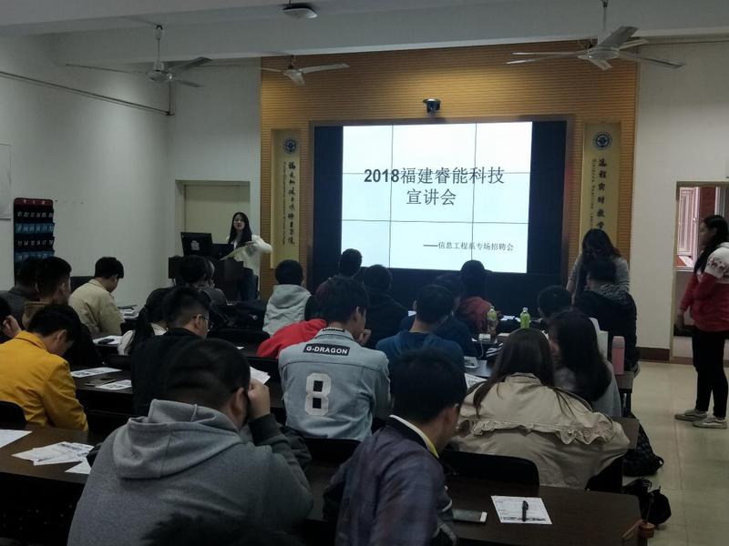 信息工程系于2018年11月2日中午12:30至下午3:00在北區(qū)2#2-1教室舉辦了信息工程系畢業(yè)生招聘宣講會(huì)。宣講人盧小姐對(duì)睿能科技公司做了簡單的介紹,說到睿能科技成立于 2007 年,總部位于福州軟件園,是專業(yè)從事針紡電控、紡織伺服驅(qū)動(dòng)器、智能照明電源的研發(fā)、生產(chǎn)及銷售的高新技術(shù)企業(yè)。旗下子公司業(yè)務(wù)涉及針織行業(yè)應(yīng)用軟件研發(fā)、IC產(chǎn)品分銷、工業(yè)電氣自動(dòng)化產(chǎn)品分銷及系統(tǒng)集成等。
