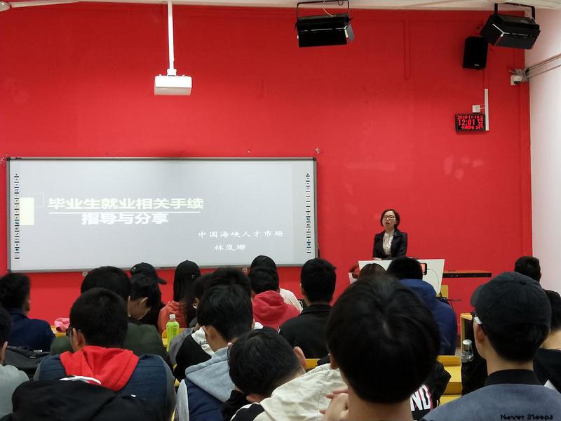 信息工程系于2018年11月14日中午12:00至下午13:00在北區(qū)2#1-5舉辦了信息工程系“畢業(yè)生就業(yè)指導(dǎo)與分享”講座,由中國海峽人才市場林嵐珊小姐主講。林小姐講到當(dāng)前畢業(yè)生就業(yè)的幾大問題以及相關(guān)解決方法,說到畢業(yè)生就業(yè)的五個關(guān)鍵詞:1.檔案2.就業(yè)協(xié)議書3.報到證4.黨組織關(guān)系5.戶口遷移證。