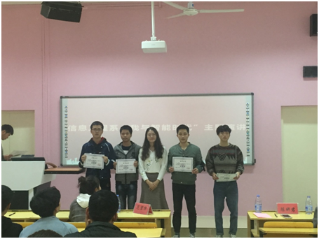 3月27日中午12點(diǎn)30分,比賽準(zhǔn)時開始。書記及各個輔導(dǎo)員都到場擔(dān)任評委,在比賽的過程中,每位同學(xué)有3分鐘的演講時間,一共有17位同學(xué)參與比賽。最后一共有4位選手獲得了好成績并由輔導(dǎo)員們頒發(fā)了獎狀并合影留念。