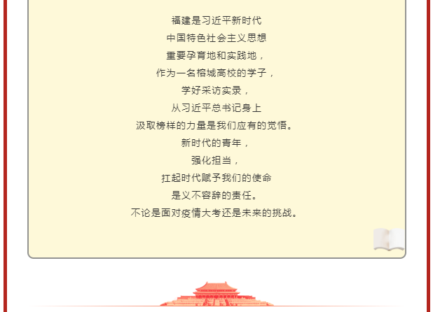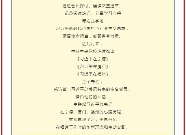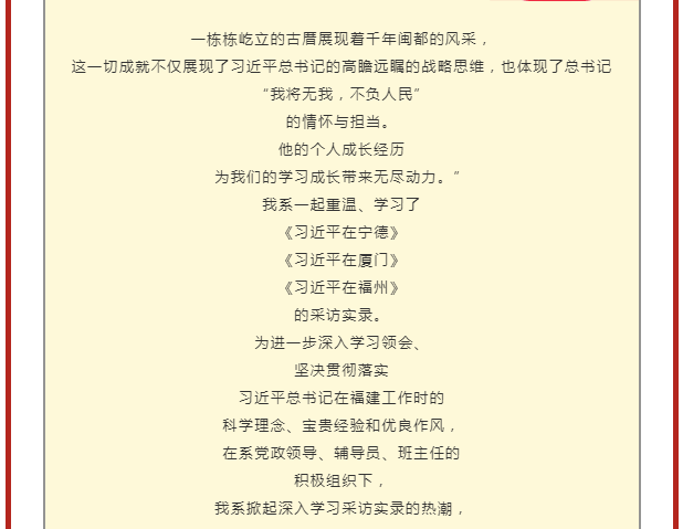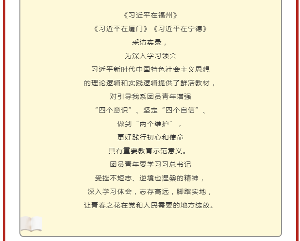 信息工程系||牢記初心使命 勇于擔(dān)當(dāng)作為 ——學(xué)習(xí)《習(xí)近平在寧德》《習(xí)近平在廈門(mén)》《習(xí)近平在福州》 采訪實(shí)錄線上團(tuán)日活動(dòng)