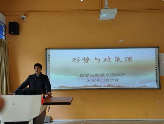 為發(fā)揮思政課主渠道作用,落實(shí)立德樹(shù)人根本任務(wù)。12月20日至22日信息與智慧交通學(xué)院黨總支書(shū)記、院長(zhǎng)分別走上講臺(tái)為同學(xué)們上了一堂主題為“擘畫(huà)新藍(lán)圖、開(kāi)啟新征程”的《形勢(shì)與政策》課。