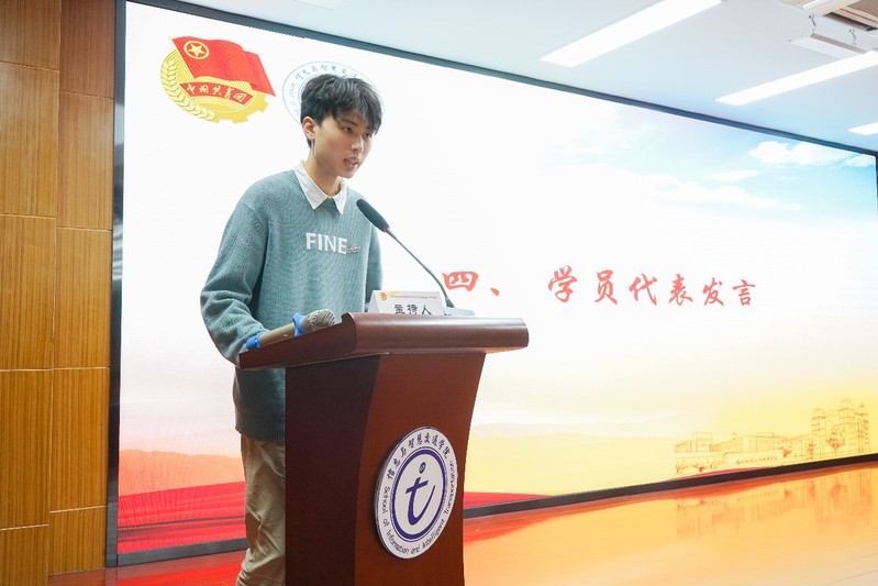 20級軟件技術4班劉棋同學代表全體學員發(fā)言并向團組織表態(tài):嚴格遵守團校各項規(guī)定,堅定信念,主動學習,積極行動,做到胸中有目標,腳下有承諾,時刻鞭策自己,經(jīng)受住各方面的考驗,爭取早日加入共青團。
