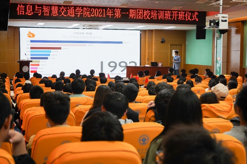 深入開展“學黨史 強信念 跟黨走”學習教育,深化推進共青團“強基固本”工程,2021年4月16日18時,信息與智慧交通學院于一號樓六樓學術報告廳舉辦2021第一學期團校培訓。學院黨總支副書記柳燕妮,學院分團委負責人沈曉家以及學院全體輔導員出席了本次開班儀式;全體團校培訓學員以及信息學院2019級團學干部共同參與了本次開班式并聆聽了講座。本次開班儀式由信息學院分團委負責人沈曉家老師主持。