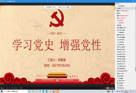 會后,白鋒橋老師進行總結(jié)和寄語:在慶祝中國共產(chǎn)黨成立100周年之際,要認真學(xué)習(xí)黨的歷史,不斷提高黨性修養(yǎng);要緊跟時代步伐,勇于創(chuàng)新,知難而進,艱苦奮斗,務(wù)求實效,不斷增強社會責(zé)任感,鑄牢報國和為民意識,為實現(xiàn)中華民族偉大復(fù)興的中國夢而不懈奮斗!