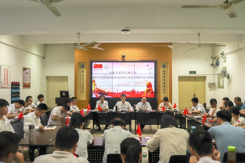 2021年7月1日,慶祝中國共產(chǎn)黨成立100周年大會在北京天安門廣場隆重舉行。中共中央總書記、國家主席、中央軍委主席習(xí)近平將發(fā)表重要講話。在這舉國歡慶的日子里,信息與智慧交通學(xué)院全體師生分別在教室和會議室集中收聽看慶祝中國共產(chǎn)黨成立100周年大會直播。