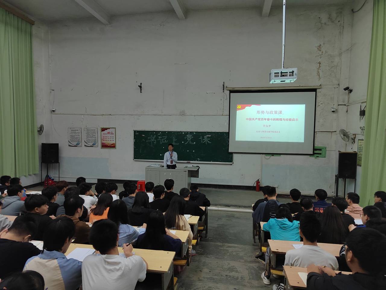 11月5日,在排下階梯教室信息與智慧交通學(xué)院黨總支書(shū)記許友孝走上講臺(tái)為同學(xué)們上了一堂主題為“堅(jiān)定信念跟黨走,做一名優(yōu)秀的新時(shí)代大學(xué)生”的《形勢(shì)與政策》課。