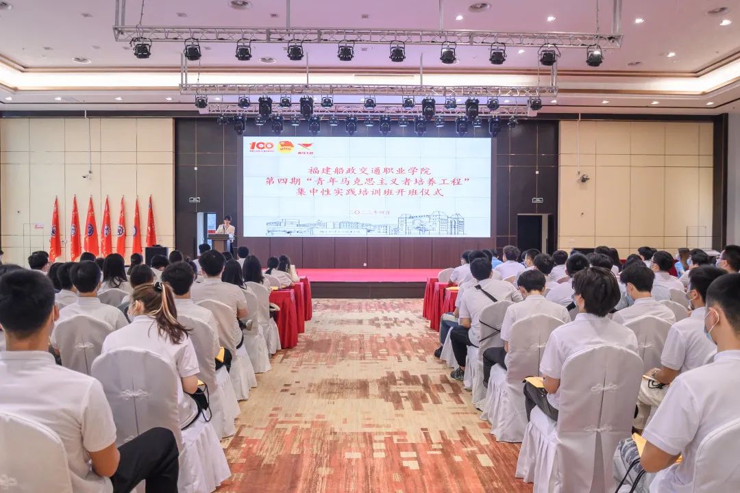 2022年4月30日在千人大廳開展福建船政交通職業(yè)學院第四期“青年馬克思主義者培養(yǎng)工程”集中性實踐培訓班開班儀式,參加本次開班儀式的有校團委書記陳慧、青馬班班主任謝鑫、各學院領隊老師以及本期青馬班全體成員,本次會議由楊婉婷老師主持。