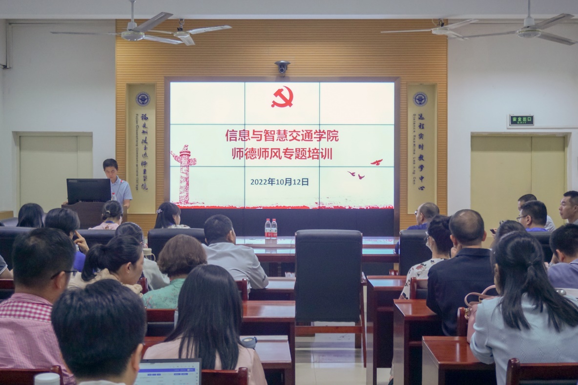 十年樹木百年樹人,教育為重,德育為先,這是師德建設(shè)重要性的深刻體現(xiàn)。教師是立校之本,師德是教育之魂。為進(jìn)一步推進(jìn)我院師德師風(fēng)建設(shè)工作,打造作風(fēng)過硬、師德高尚的教師隊伍,樹立嚴(yán)格自律、愛崗敬業(yè)、為人師表的良好教師形象。10月12日,信息與智慧交通學(xué)院組織學(xué)院全體教職工于福道園自強樓2-1開展師德師風(fēng)專題培訓(xùn)。此次培訓(xùn)由信息與智慧交通學(xué)院黨總支書記許友孝主持。
