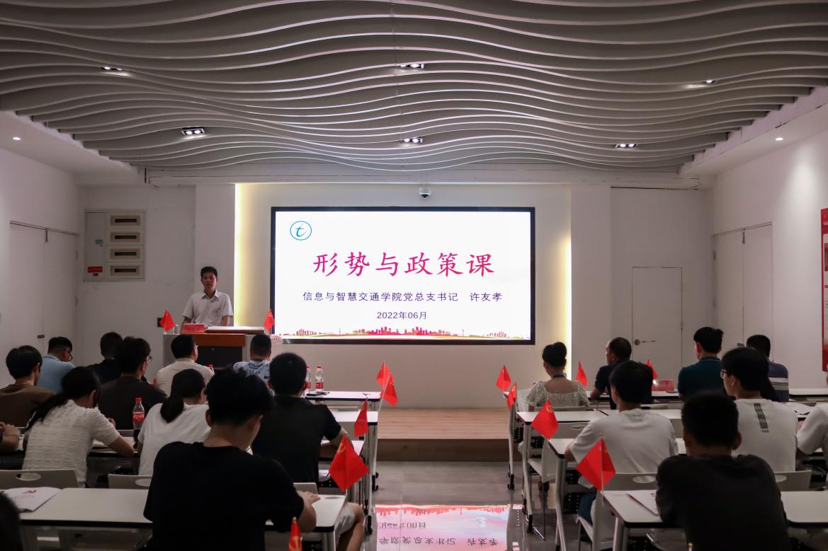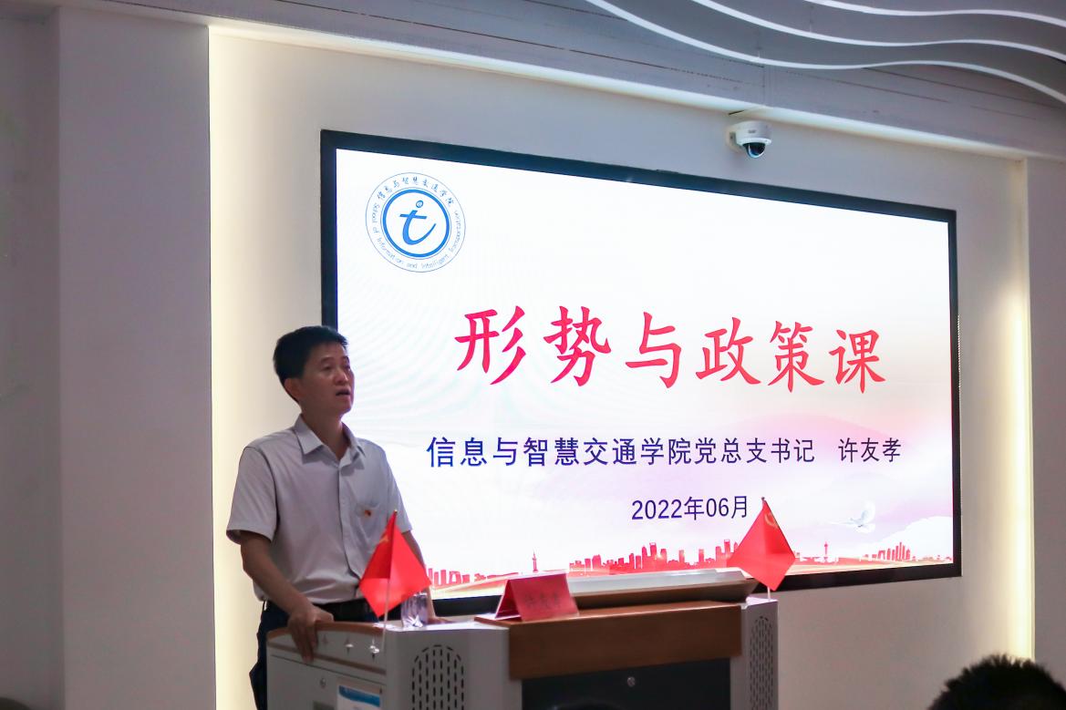 為進(jìn)一步加強(qiáng)大學(xué)生思想政治教育工作,6月22日,信息與智慧交通學(xué)院黨總支書(shū)記許友孝在福道園鑒知樓三樓黨建館講授“形勢(shì)與政策”課。