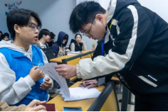 檢錄完成后,在省廳派駐的賽項(xiàng)監(jiān)督見(jiàn)證下,學(xué)院老師帶領(lǐng)志愿者分頭為各參賽選手開(kāi)展兩輪抽簽加密,再二次加密完成后,各位選手由志愿者帶領(lǐng)到各自比賽場(chǎng)對(duì)應(yīng)的工位。