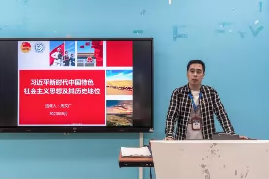 周文廣老師通過講述習(xí)近平新時(shí)代中國(guó)特色社會(huì)主義思想在馬克思主義發(fā)展史上具有十分重要的地位;學(xué)習(xí)貫徹習(xí)近平新時(shí)代中國(guó)特色社會(huì)主義思想,確保事業(yè)發(fā)展的正確政治方向,同學(xué)們要團(tuán)結(jié)一心,凝聚起每個(gè)人的力量,為實(shí)現(xiàn)黨的二十大確定的目標(biāo)任務(wù)作出積極貢獻(xiàn)。