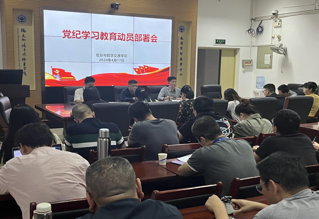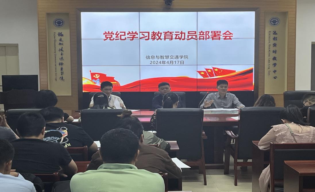 4月17日下午,信息與智慧交通學(xué)院黨總支召開黨紀(jì)學(xué)習(xí)教育動員部署會,部署學(xué)院黨紀(jì)學(xué)習(xí)教育工作。學(xué)院領(lǐng)導(dǎo)班子成員、師生黨支部書記,全體黨員參加會議,會議由學(xué)院黨總支書記許友孝主持。