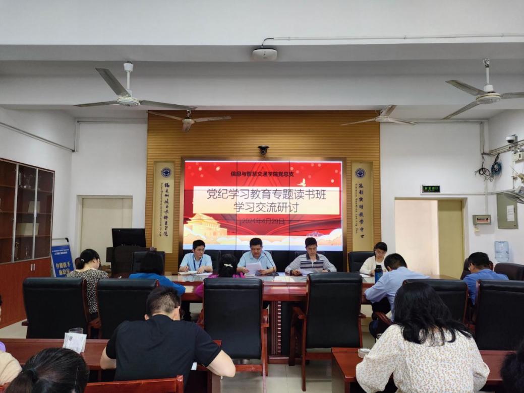 4月29日下午,信息與智慧交通學(xué)院黨總支于福道園自強(qiáng)樓2-1召開黨紀(jì)學(xué)習(xí)教育讀書班學(xué)習(xí)研討會。會議由黨總支書記許友孝主持,學(xué)院全體教職工參加學(xué)習(xí)研討。