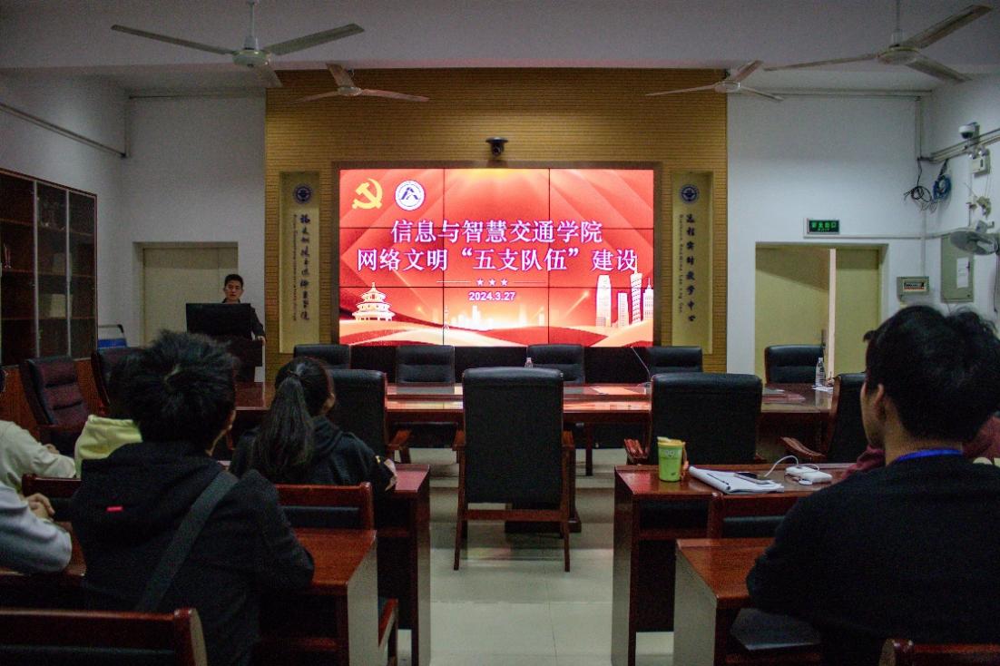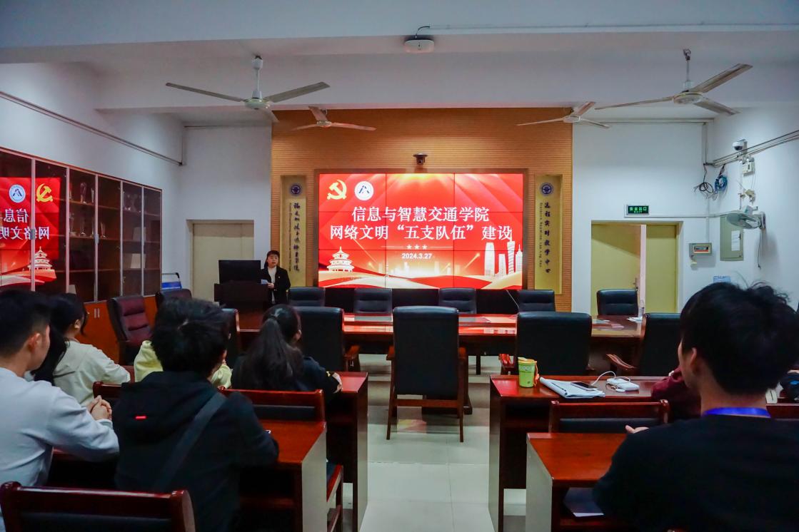 為深入貫徹習近平總書記對網絡安全和信息化工作的重要指示精神,進一步加強網絡文明建設,推動網絡文明建設工作深入開展,提升學院師生的網絡安全意識,做好日常網絡安全保障工作。3月27日下午,信息與智慧交通學院在福道園自強樓2-1教室召開了網絡文明“五支隊伍”建設專題會。參會人員包括信息與智慧交通學院黨總支書記許友孝、黨總支副書記柳燕妮,全體輔導員,以及22級和23級網絡信息安全員、網絡監(jiān)管員。