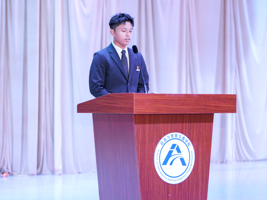 老生代表、校執(zhí)行會主席、院學生會主席團成員許曉捷同學指出,從中學到大學,同學們迎來身份角色轉變及學習場景和方式的變革。信息與智慧交通學院擁有優(yōu)秀師資隊伍、完善教學設施和科研環(huán)境,為同學們提升自我奠定堅實基礎。相信大家能在此找到適合自己發(fā)展的平臺和方向。他對學弟學妹們提出幾點建議:其一,以報效國家為學習宗旨。新中國即將迎來 75 周年華誕,信息青年學子要有使命感和責任感,不辜負黨和國家期待。將個人成長與國家發(fā)展緊密相連,通過學習使學問深厚、眼界開闊。其二,以求真問學為學習目標,人生如馬拉松,新環(huán)境有挑戰(zhàn)也有相互學習機會。船政兼容并包,鼓勵多元發(fā)展,只要不懈奮斗,每條路都精彩。其三,以實踐鍛煉為動力。大學要敢于探索未知,突破思維框架。校院兩級團委、學生會是展示才華舞臺,能鍛煉組織、管理等能力。希望大家積極參與,向高素質綜合性人才靠攏。