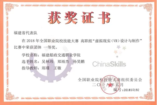 全國(guó)技術(shù)能手、省級(jí)高層次人才領(lǐng)銜教學(xué),團(tuán)隊(duì)教師100%持有高級(jí)職業(yè)技能證書(shū),其中全國(guó)技能大賽優(yōu)秀指導(dǎo)教師3位,引入企業(yè)真實(shí)項(xiàng)目,打造“產(chǎn)教融合、工學(xué)一體”的實(shí)戰(zhàn)化課堂。團(tuán)隊(duì)師生連續(xù)多年獲得國(guó)家級(jí)獎(jiǎng)項(xiàng)30余項(xiàng)、省級(jí)獎(jiǎng)項(xiàng)20余項(xiàng),其中全國(guó)職業(yè)院校技能大賽高職組虛擬現(xiàn)實(shí)(VR)設(shè)計(jì)與制作一等獎(jiǎng)3項(xiàng),福建省職業(yè)院校技能大賽高職組中獲得一等獎(jiǎng)十余項(xiàng)。團(tuán)隊(duì)全程指導(dǎo),學(xué)生可參與國(guó)家級(jí)、省級(jí)VR設(shè)計(jì)大賽,積累作品集與行業(yè)認(rèn)可度。