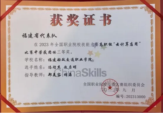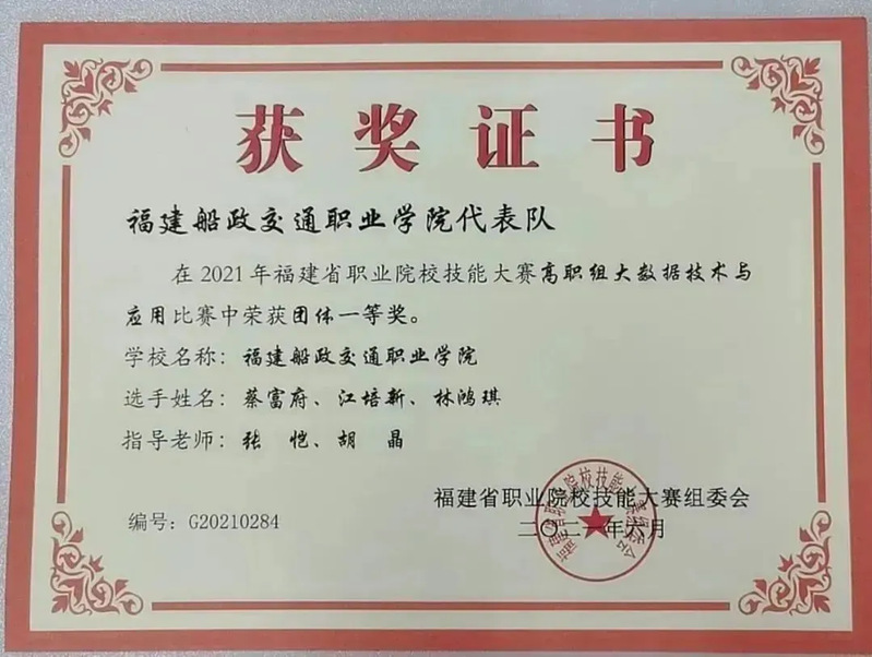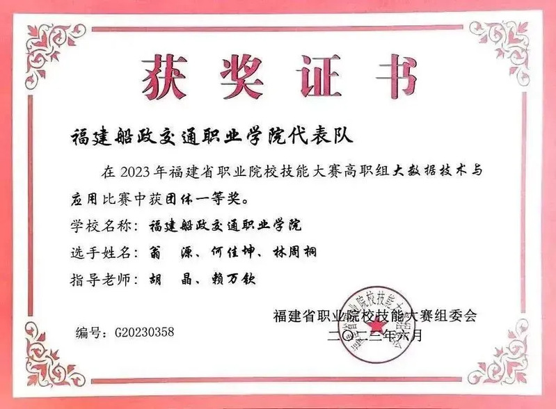 人才培養(yǎng)依托行業(yè)領(lǐng)軍企業(yè),結(jié)合智慧交通大數(shù)據(jù)、智慧海洋大數(shù)據(jù)等產(chǎn)業(yè)發(fā)展方向,注重“產(chǎn)教融合、課證融通、以賽促學(xué)”的教育理念,學(xué)生多次在世界職業(yè)院校技能大賽、全省職業(yè)院校技能競(jìng)賽、金磚國(guó)家技能發(fā)展與技術(shù)創(chuàng)新大賽、華為ICT大賽等專(zhuān)業(yè)相關(guān)賽項(xiàng)中榮獲一等獎(jiǎng)、二等獎(jiǎng)的好成績(jī)。