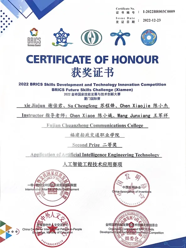競(jìng)賽王者:學(xué)生斬獲中國(guó)國(guó)際“互聯(lián)網(wǎng)+”大賽國(guó)賽銀獎(jiǎng)、福建省職業(yè)技能競(jìng)賽“物聯(lián)網(wǎng)應(yīng)用開(kāi)發(fā)”賽項(xiàng)一等獎(jiǎng)、“一帶一路”金磚國(guó)家技能大賽全國(guó)一等獎(jiǎng)等30余項(xiàng)高級(jí)別獎(jiǎng)項(xiàng),彰顯“以賽促學(xué)”的卓越成效。