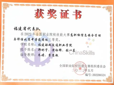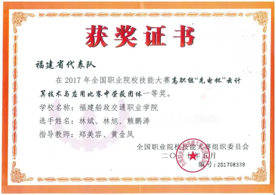 本專(zhuān)業(yè)是國(guó)家現(xiàn)代學(xué)徒制試點(diǎn)專(zhuān)業(yè),專(zhuān)業(yè)教學(xué)團(tuán)隊(duì),教學(xué)實(shí)力強(qiáng),副教授以上職稱(chēng)占75%,其中博士學(xué)歷教師1位,碩士學(xué)歷100%,高級(jí)工程師1位,海外訪問(wèn)學(xué)者1 位,“雙師型”教師100%,全國(guó)技能大賽優(yōu)秀指導(dǎo)教師4位,省級(jí)優(yōu)秀指導(dǎo)教師5位,校級(jí)教學(xué)名師1位,2023年福建省職業(yè)院校技能大賽教師教學(xué)能力大賽一等獎(jiǎng)3項(xiàng)。團(tuán)隊(duì)師生連續(xù)多年在“網(wǎng)絡(luò)系統(tǒng)建設(shè)運(yùn)維”、“計(jì)算機(jī)網(wǎng)絡(luò)應(yīng)用”、“5G全網(wǎng)建設(shè)”、“信息安全管理與評(píng)估”、“云計(jì)算”等賽項(xiàng)等賽項(xiàng)獲得國(guó)家級(jí)獎(jiǎng)項(xiàng)30余項(xiàng)、省級(jí)獎(jiǎng)項(xiàng)20余項(xiàng),其中全國(guó)職業(yè)院校技能大賽高職組中一等獎(jiǎng)3項(xiàng),二等獎(jiǎng)10余項(xiàng);福建省職業(yè)院校技能大賽高職組中獲得一等獎(jiǎng)20余項(xiàng)。