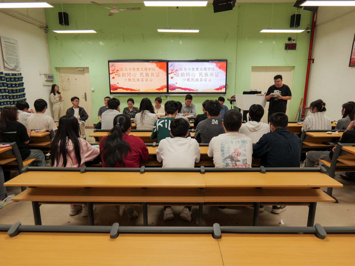 為深入貫徹黨的民族政策,弘揚(yáng)民族團(tuán)結(jié)精神,促進(jìn)各民族之間的交流與融合,營(yíng)造和諧、多元的校園文化氛圍。信息與智慧交通學(xué)院于4月16日在福道園自強(qiáng)樓1-4教室開展了“福韻同心,民族共話”少數(shù)民族茶話會(huì)。此次活動(dòng)旨在將民族團(tuán)結(jié)理念融入日常,共同構(gòu)建一個(gè)充滿活力、團(tuán)結(jié)友愛(ài)的校園環(huán)境。
