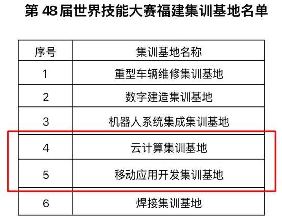 近日,福建省人力資源和社會保障廳正式公布第48屆世界技能大賽福建省集訓(xùn)基地名單,我院云計算、移動應(yīng)用開發(fā)兩大項目基地成功入選。同時,我院三名優(yōu)秀選手憑借過硬技能實力,成功入圍本屆福建省集訓(xùn)隊。