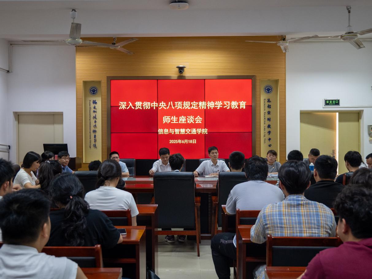 為深入貫徹落實習近平總書記關于青年成長成才的重要論述,切實了解學生在日常學習與工作中面臨的實際困難,信息與智慧交通學院于2025年6月18日在福道園自強樓2-1會議室舉辦了師生座談會。黨總支書記許友孝、院長林少丹、黨總支副書記柳燕妮、副院長黃炳樂、各教研室主任及團學干部代表共同參與本次會議。
