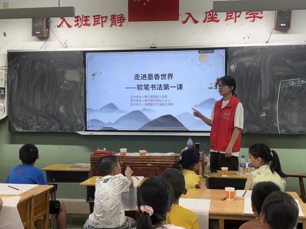 在泰寧的夏日課堂,支教的青春身影熠熠生輝。促進團俯身教孩子們玩轉(zhuǎn)魔方,指尖轉(zhuǎn)動間,是思維啟迪的奇妙旅程;站上講臺講“軟筆書法第一課”,筆觸游走時,讓墨香沁入童真。這一趟支教行,以知識為舟,載著熱忱與希望,在孩子們心湖泛起波光,也讓青春在鄉(xiāng)野支教中,書寫照亮成長的溫暖注腳 。