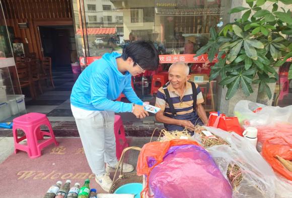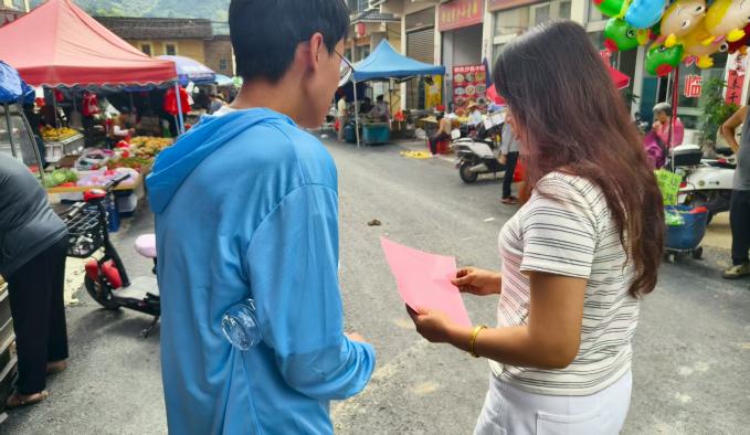 南靖縣社會(huì)服務(wù)踐行團(tuán)抓住圩日人潮,清晨即在縣城中心集市搭起“防詐驛站”。踐行團(tuán)成員身著藍(lán)色制服,用閩南語(yǔ)、普通話雙語(yǔ)講解“保健品”“養(yǎng)老理財(cái)”“刷單返利”等最新騙局;同時(shí)發(fā)放傳單,把警示送進(jìn)菜籃,以身邊事警醒身邊人。針對(duì)老厝木梁密、線路舊,踐行團(tuán)也進(jìn)行消防安全提醒,示范高功率電器限時(shí)使用、插排不串接,演示油鍋起火蓋鍋蓋、森林防火“十不準(zhǔn)”,共筑鄉(xiāng)村防火安全防線。