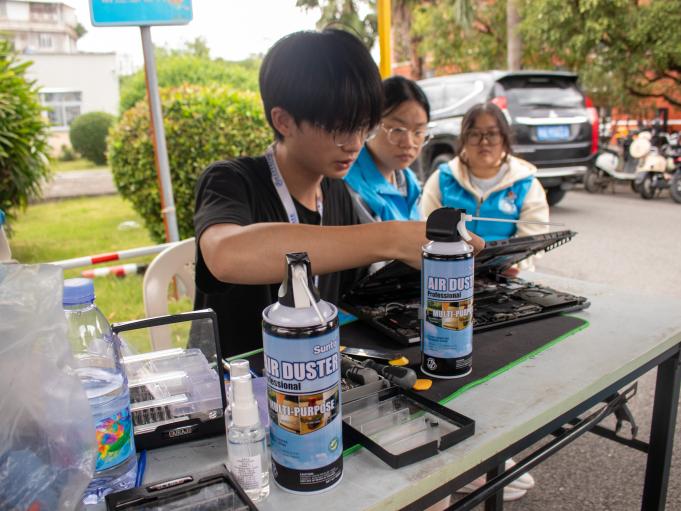 在志愿服務(wù)的現(xiàn)場(chǎng),志愿者們憑借其精湛的技藝和周到的服務(wù)精神,為師生們提供了電腦風(fēng)扇的細(xì)致清灰以及屏幕的專業(yè)清潔服務(wù)。此外,志愿者們還向師生們傳播了關(guān)于電腦日常護(hù)理與保養(yǎng)的寶貴知識(shí),提醒大家在使用電腦的過(guò)程中需注意防塵和散熱的重要性,防止因灰塵積聚而引發(fā)的電腦故障問(wèn)題。