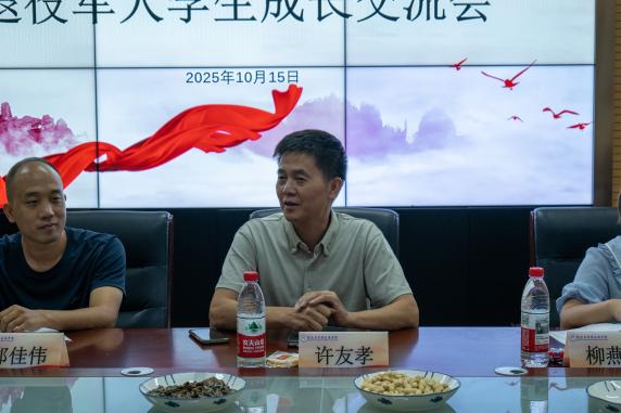 活動開始,學(xué)院黨總支書記許友孝率先發(fā)言,他向在場退役軍人學(xué)生致以崇高敬意,肯定其在軍旅生涯中錘煉的紀(jì)律意識、責(zé)任擔(dān)當(dāng)與堅韌品格,強(qiáng)調(diào)這些品質(zhì)既是軍旅榮譽(yù),更是校園與未來發(fā)展的“精神財富”。隨后,學(xué)院黨總支副書記柳燕妮結(jié)合學(xué)院人才培養(yǎng)目標(biāo),聚焦退役軍人學(xué)生的校園適應(yīng)需求,鼓勵大家將部隊優(yōu)良作風(fēng)融入學(xué)習(xí)生活,主動調(diào)整身份轉(zhuǎn)變節(jié)奏,并明確學(xué)院將作為堅實后盾,為其提供精準(zhǔn)支持、助力成長突破。