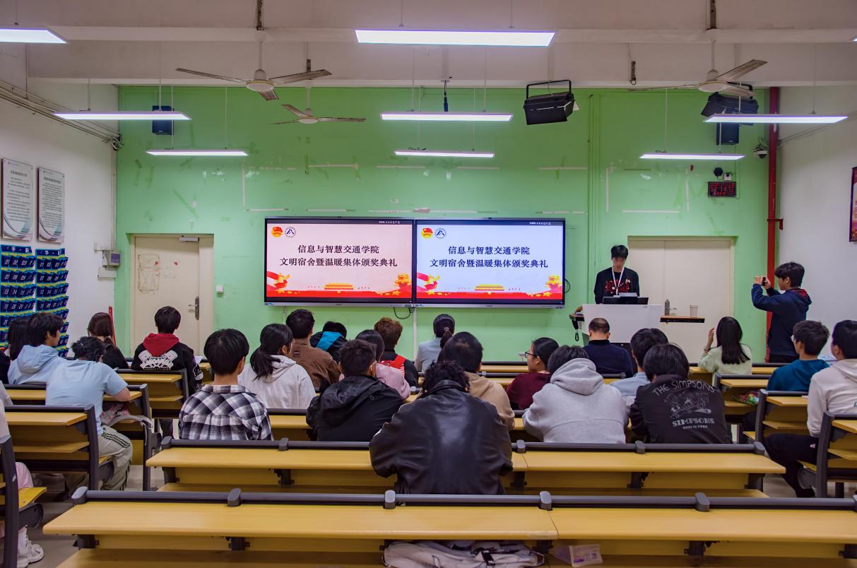 為進(jìn)一步推進(jìn)文明校園、和諧校園、平安校園創(chuàng)建,切實(shí)推動“溫暖集體”建設(shè)工作落實(shí)落細(xì),全面提高學(xué)生的自我管理能力和綜合素質(zhì)水平,11月13日,信息與智慧交通學(xué)院在福道園自強(qiáng)樓1-4教室舉辦2025-2026學(xué)年第一次文明宿舍暨溫暖集體頒獎儀式。出席本次活動的有信息與智慧交通學(xué)院黨總支副書記柳燕妮,輔導(dǎo)員代表,獲獎宿舍學(xué)生和新生班級代表等?;顒佑尚畔⑴c智慧交通學(xué)院自律會紀(jì)保部負(fù)責(zé)同學(xué)主持。