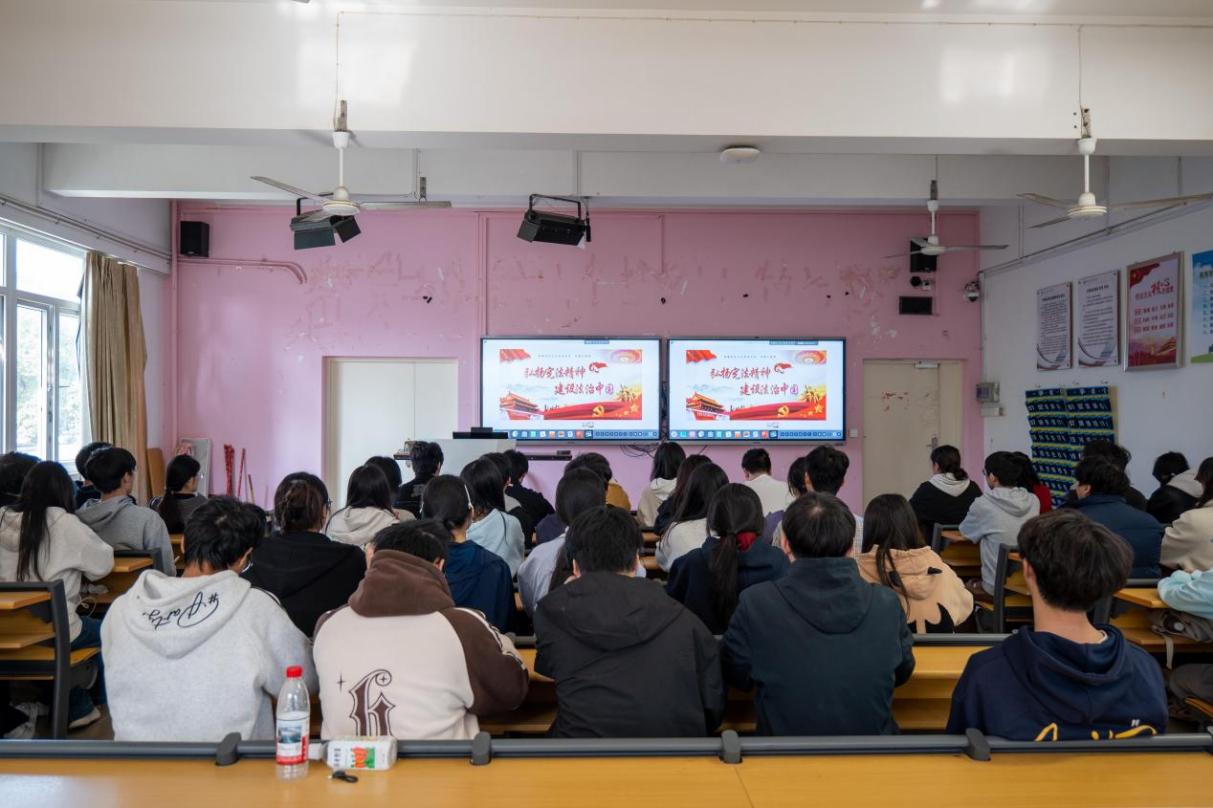 活動以憲法紀錄片觀影拉開序幕。影片通過生動鮮活的案例、深入淺出的解讀,從憲法的起源發(fā)展、核心內(nèi)容與精神實質(zhì),到憲法與公民生活的緊密關(guān)聯(lián)、對青年成長的指引意義,全方位展現(xiàn)了憲法作為國家根本大法的莊嚴與溫度。從出生時的權(quán)利保障到求學路上的公平機遇,從勞動就業(yè)的合法權(quán)益到社會生活的秩序規(guī)范,憲法的身影貫穿人生每一個重要階段,讓同學們深刻領(lǐng)悟“憲法不是遙遠的文本,而是與我們息息相關(guān)的行為準則”,真切體會到憲法既是治國安邦的總章程,也是守護青年成長、護航人生旅程的堅實依靠。