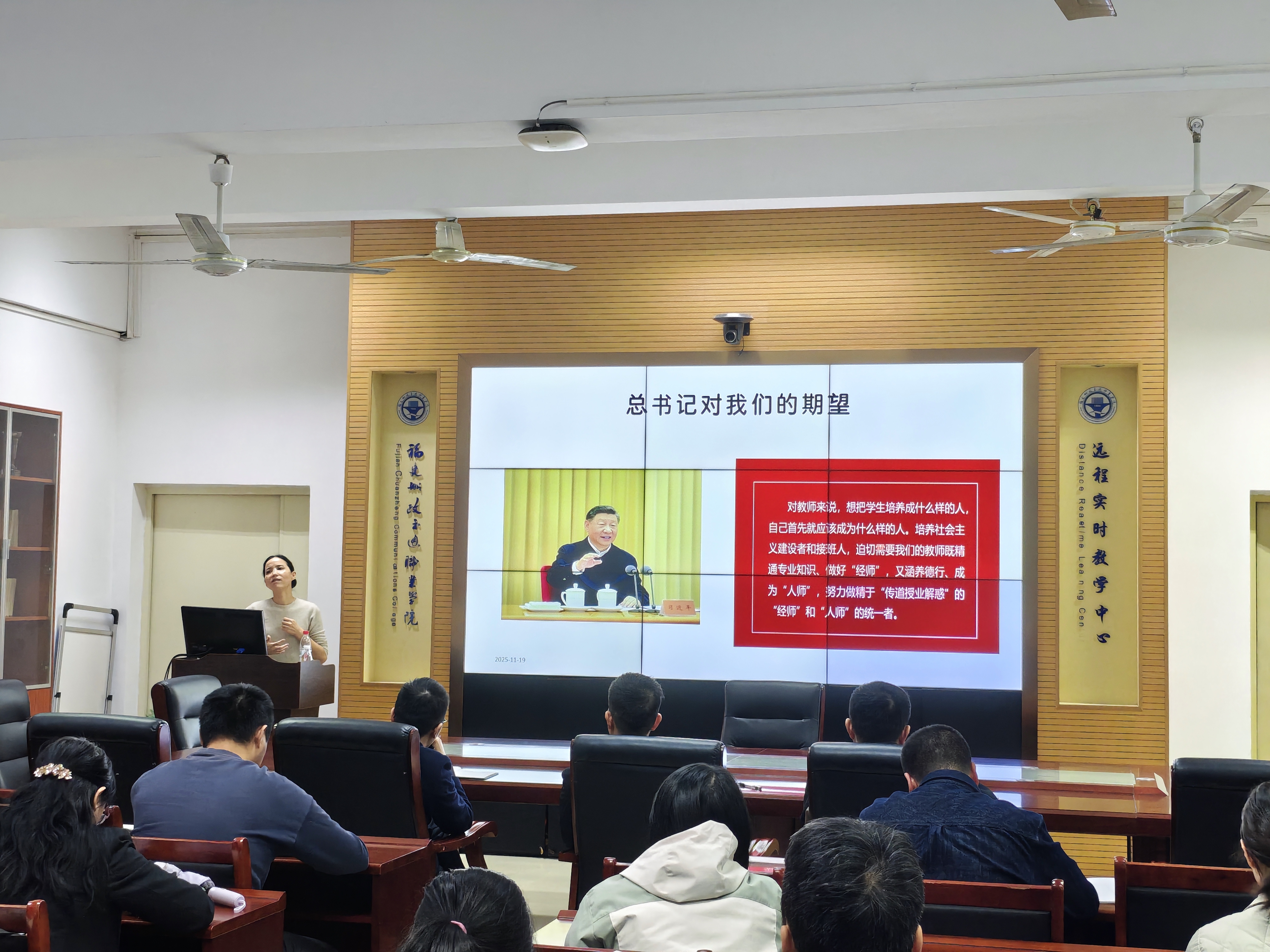 楊小霞老師以“厚植教育家精神,塑新時(shí)代師德坐標(biāo)”為主題,結(jié)合黨的二十屆四中全會(huì)精神,從新時(shí)代師德師風(fēng)建設(shè)的價(jià)值意蘊(yùn)、戰(zhàn)略背景、內(nèi)涵和要求、路徑選擇及對(duì)師德建設(shè)的認(rèn)識(shí)與實(shí)踐等維度,為全體教師帶來(lái)了一場(chǎng)兼具思想深度與實(shí)踐指導(dǎo)性的分享。她的講解直擊教育本質(zhì),既有對(duì)師德師風(fēng)建設(shè)重要性的深刻闡釋?zhuān)灿袑?duì)一線(xiàn)教師如何在日常教學(xué)中涵養(yǎng)師德、踐行育人使命的具體指導(dǎo),引發(fā)了全體教師的強(qiáng)烈共鳴與深度思考。